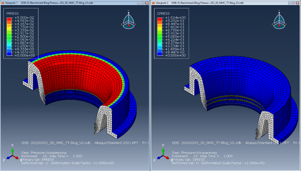 Schritt 2 simuliert die Auswirkungen von unter Druck stehendem Fluid, das von oben in den modellierten Bereich eintritt und Druck auf den freiliegenden Teil der Gummidichtung ausübt.