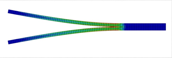Modelowanie zachowania kohezyjnego w Abaqus pozwala symulować separację początkowo połączonych powierzchni i wykonywać obliczenia połączeń klejonych z uwzględnieniem ich postępującego uszkodzenia czy delaminacji kompozytów. Zachowanie tego typu połączeń jest opisywane prawem kohezyjnym – zależnością między naprężeniami stycznymi w interfejsie a separacją.